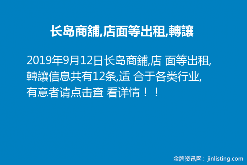 “长岛44出口白人区甲店转让 5脚池 5桌椅 2房间 900多尺 还有4年合约 租金$2200(包括地税和垃圾) 手脚$23 SNS$35 UV 新套$70 另有嫁接睫毛。 住宅区街道可随意停车。对面partyCity 隔壁冰淇淋店 客人稳定 适合夫妻或姐妹创业 店主无心经营 半卖半送 诚心转让 非诚勿扰 9173994666 无人接听可留言或短信”