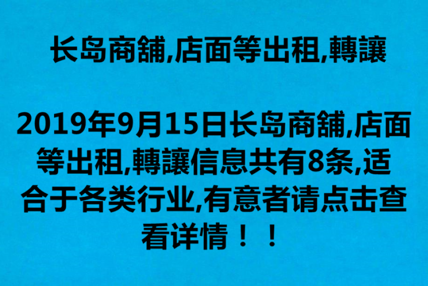 “长岛44出口白人区甲店转让 5脚池 5桌椅 2房间 900多尺 还有4年合约 租金$2200(包括地税和垃圾) 手脚$23 SNS$35 UV 新套$70 另有嫁接睫毛。 住宅区街道可随意停车。对面partyCity 隔壁冰淇淋店 客人稳定 适合夫妻或姐妹创业 店主无心经营 半卖半送 诚心转让 非诚勿扰 9173994666 无人接听可留言或短信”