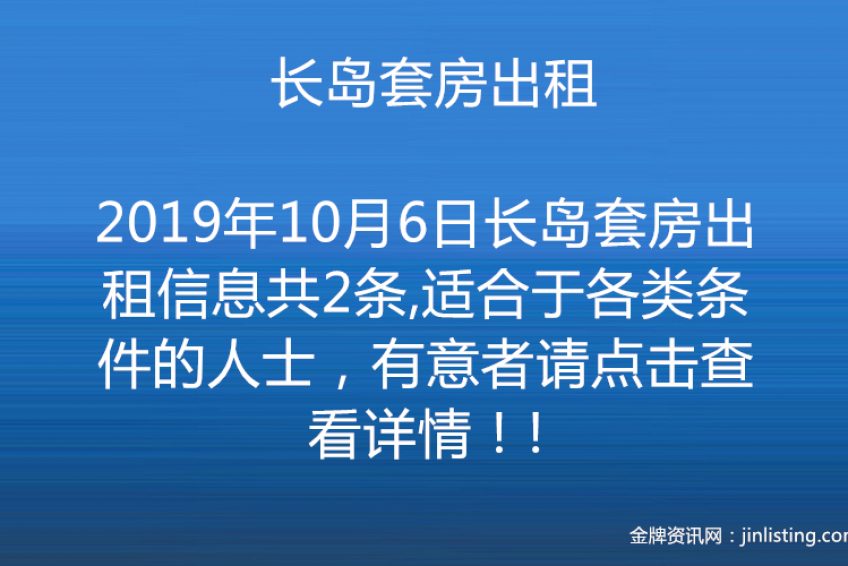 1.长岛41出口有房出租 长岛房屋出租无中介,41出口Levittown 两房两厅一浴一厨,独立出入,有车库,院子宽敞,学区好,离costco 丶IKEA 丶Roosevelt Mall 都很近!!随时入住 !!!可随时看房电话:516-234-9465 袁女士