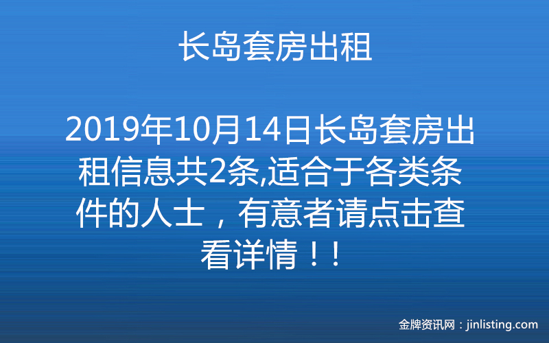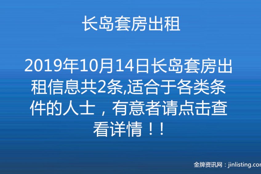 1.长岛41出口(Levittown)2楼2房1厨1浴 全新装修 独立出入 “(Levittown) 全新出租! 2楼两房1厨1浴室 独立出入 内有洗衣机烘干机 全新$2200整套出租 包水包电包暖气 环境安静优美 白人区 近超市 15分钟到LIRR(HICKSVILLE火车站) 近 Long Island University (长岛大学)Hofstra University (霍夫斯特拉大学) Adelphi University (艾德菲大学) 咨询电话:510-936-3220 Email:Ryan__D@live.com”