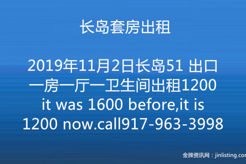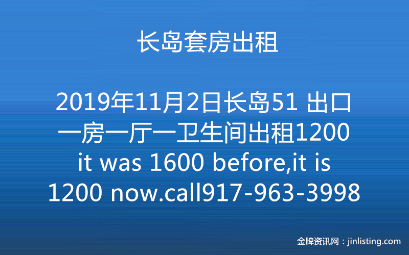 长岛51 出口 一房一厅一卫生间出租1200 it was 1600 before, it is 1200 now. call917-963-3998