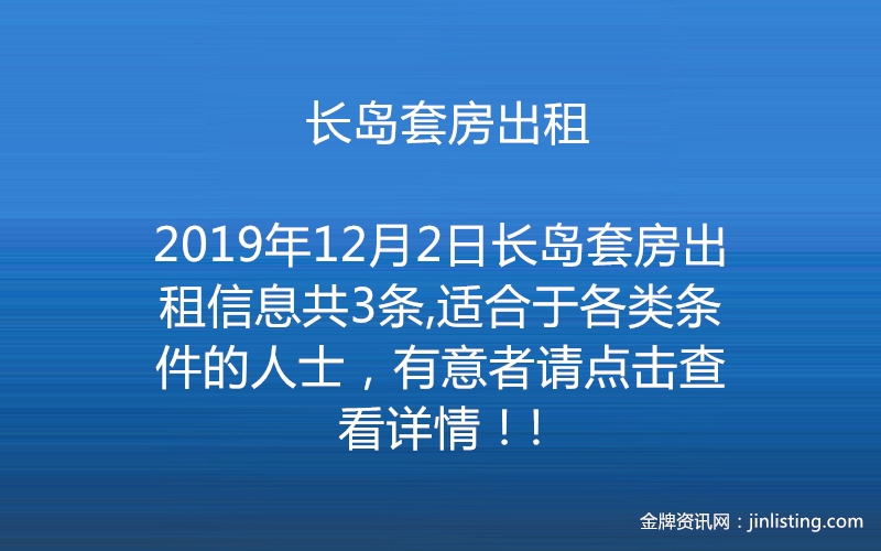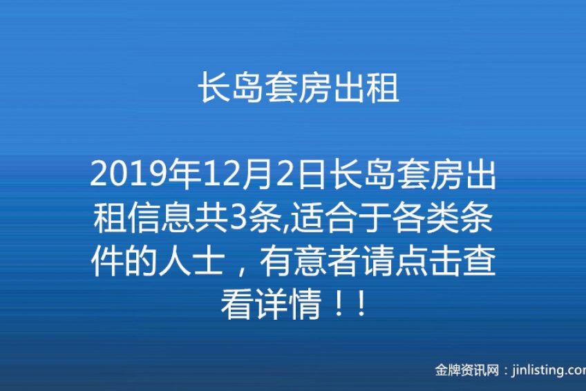 1. “纽约长岛38出口学区房,好房:二家庭二楼三居室出租,房大窗大,房间明净,单独出入通道。整租优先,可三间单独出租(600-800每间)。 地址:长岛 East Meadow,社区优美静谧,交通方便。 周边学区: Adelphi University (少于20分钟) Hofstra University (少于10分钟) 长岛大学-post 校区&纽约理工大学 (20分钟) 艾森豪威尔公园 (5分钟) 琼斯海滩(15分钟) SUNY-old westburry (15分钟) shoping mall (10分钟) 多家中国餐馆,附近有中国超市 无中介费!电话:917-518-6872”
