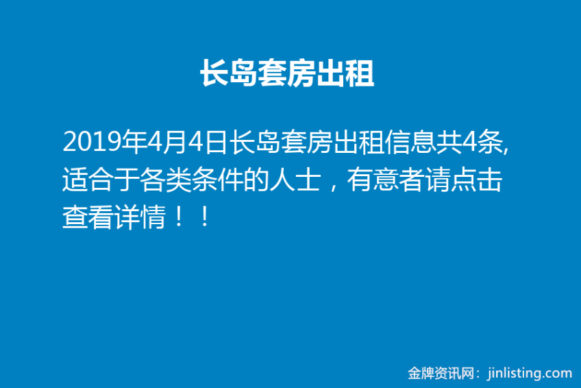 长岛好区(495第45出口),独栋大套房。环境安静,停车便捷。房内有单独更衣间,洗手间。简单家具,宽带,水电瓦斯,暖气空调,洗衣机,冰箱全包。1000/月。仅限注重卫生爱干净,无炊或少炊的单身女性。电话9175387200