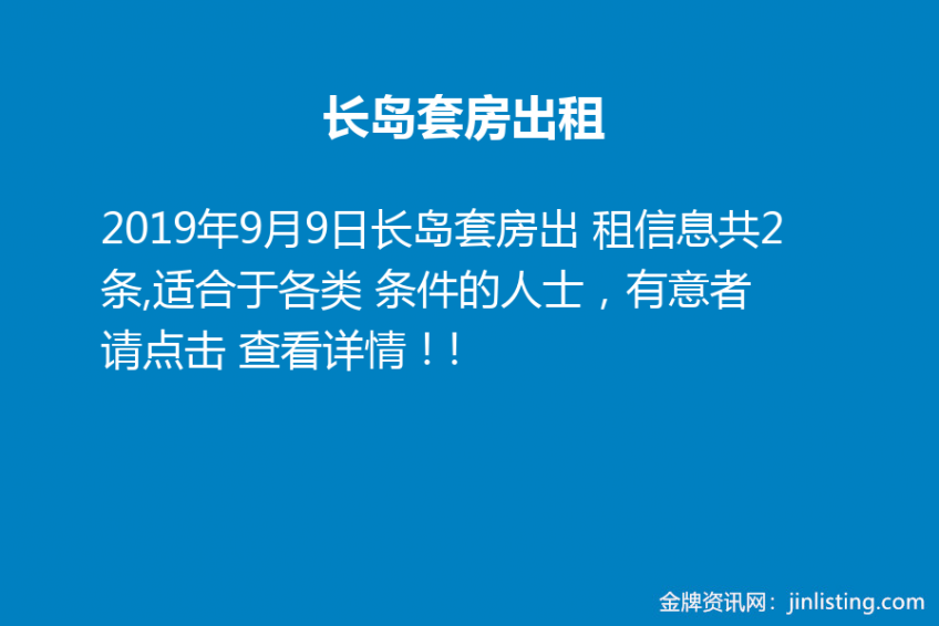 1. “长岛39出口整栋房子出租 39号出口全新两房两厕好学区north shore 学区 包水暖 即刻入住 请电 9178158209”