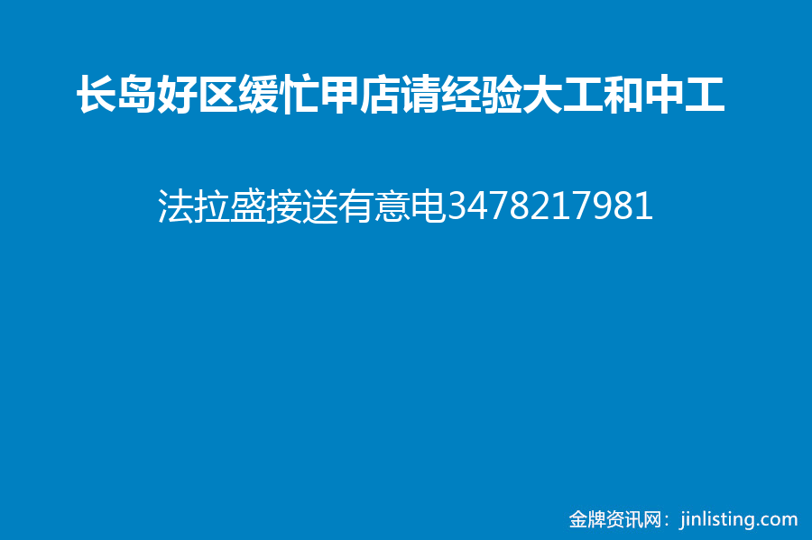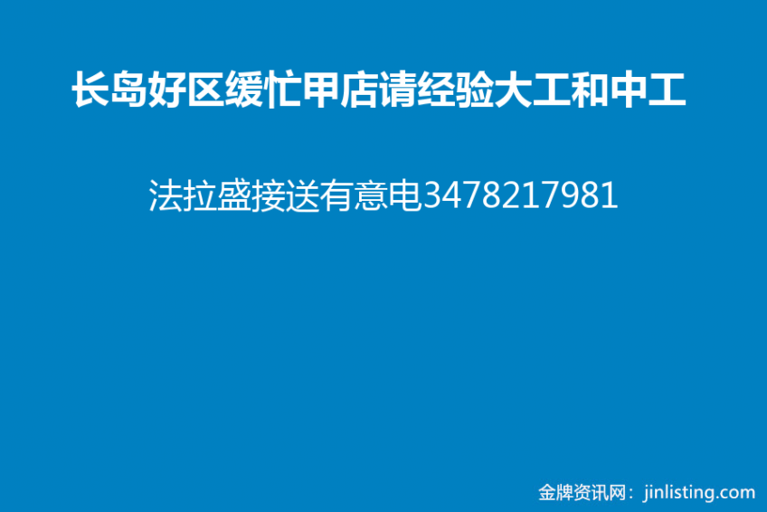 长岛好区缓忙甲店请经验大工和中工,法拉盛接送有意电3478217981
