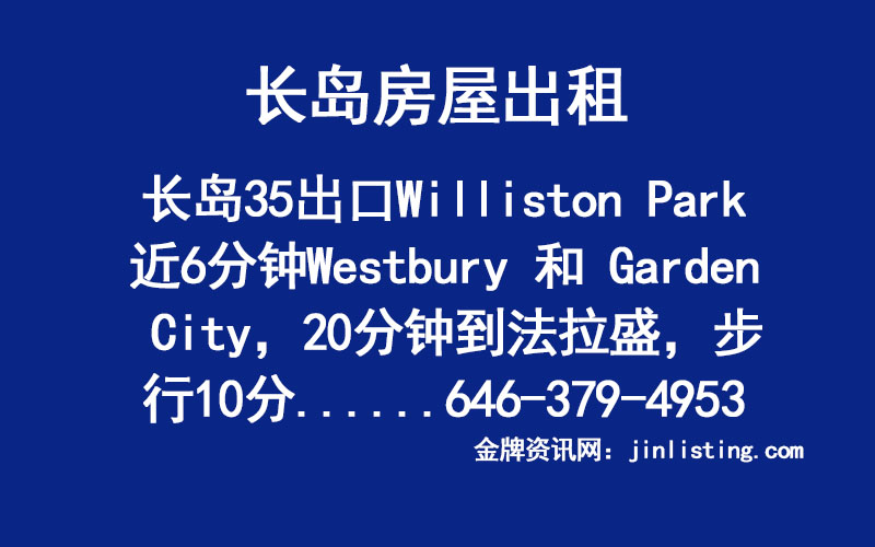 “长岛35出口Williston Park近6分钟Westbury 和 Garden City,20分钟到法拉盛,步行10分钟到H Mart,开车5分钟飞龙超市,10分钟罗斯福百货中心,也靠近Adelphi和Hofstra 大学。
