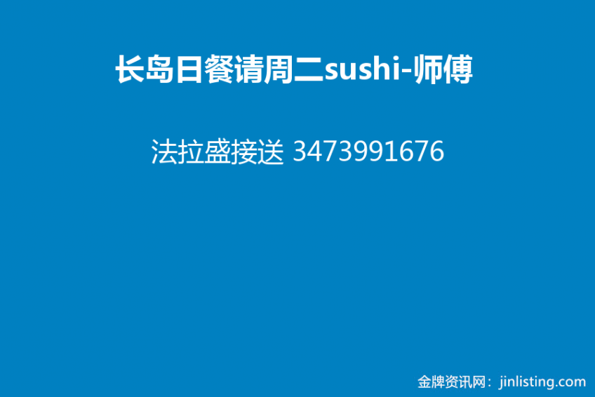 长岛日餐请周二sushi 师傅 法拉盛接送 3473991676