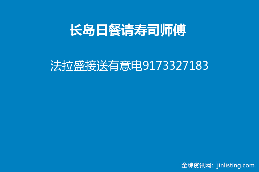 长岛日餐请寿司师傅 法拉盛接送有意请电9173327183
