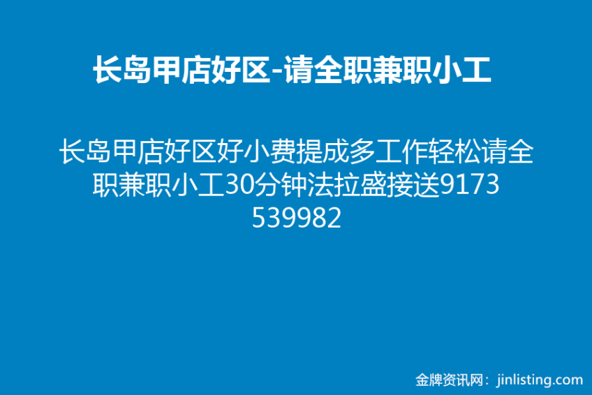 长岛甲店好区好小费提成多工作轻松请全职兼职小工30分钟法拉盛接送9173539982