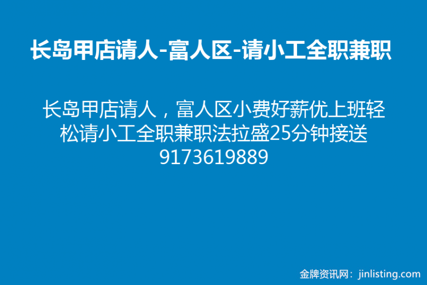 长岛甲店请人,富人区小费好薪优上班轻松请小工全职兼职法拉盛25分钟接送9173619889