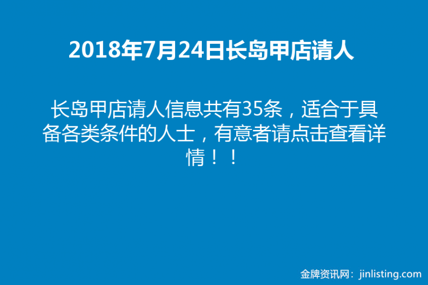 35、甲店招工:长岛区半小时车程,聘请经验小工,法拉盛接送。请电:929 666 2277