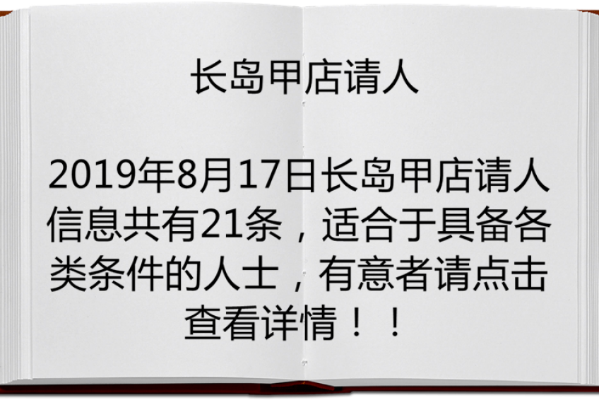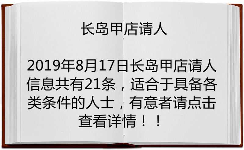 長島大店豪華裝修 誠聘小工數名 小費好 提成多 純白人區 老闆年輕事兒少 有意者請聯繫 646 371 7434