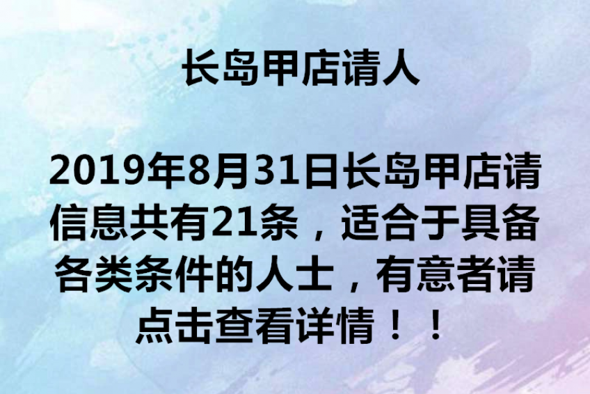 长岛甲店好区近请熟手,半熟手小工FT.PT均可,ELM和贝赛新鲜草原都有接送联系3472559108