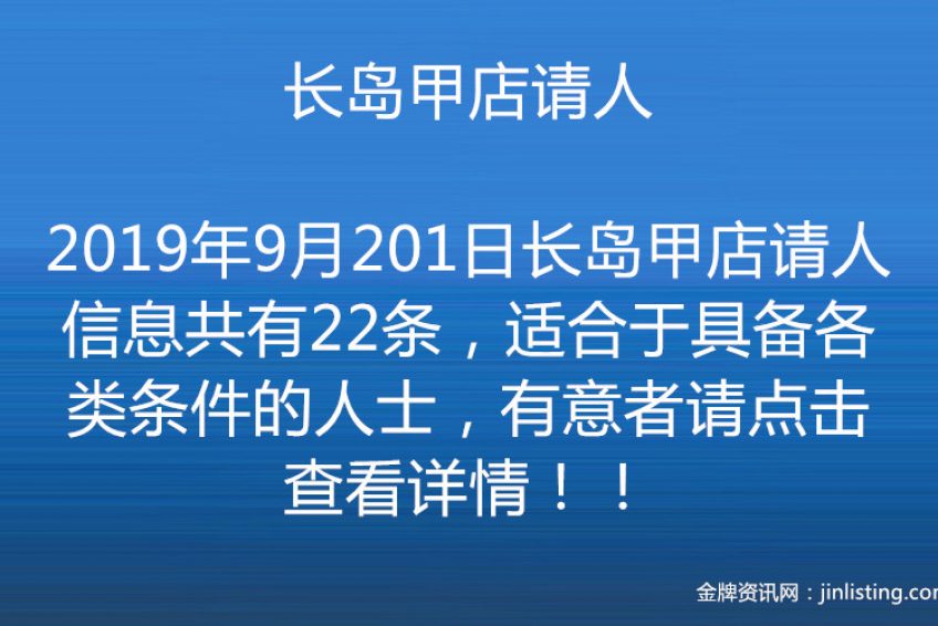 长岛好区繁忙甲店,法拉盛接送20分钟. 诚请熟手长工小工和周末part time 小工,环境好,提成高。917-717-9911