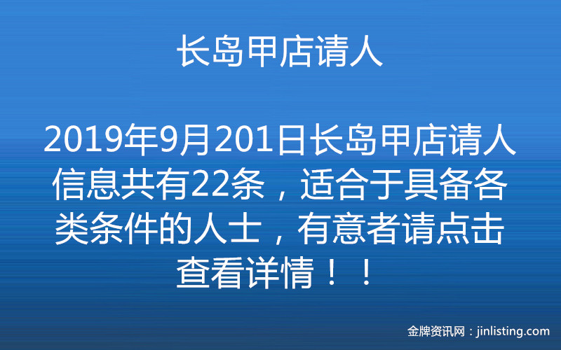 长岛甲店请周二或者周三大工 意者请联系6463300236