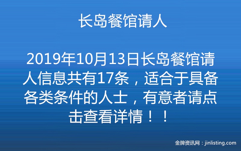 “长岛All You Can Eat全日餐招启台,法拉盛接送,需会英文(客人都是老外),动作快。经理同事都是年轻人好相处,只要事情本分做好就好,一周休一天,午休一小时,这里采取月薪制 (不打小费的),熟手启台月薪$3200,做好做熟后有提升空间。半熟手电议。 有意者联系 9294335861 (谢绝销售)”