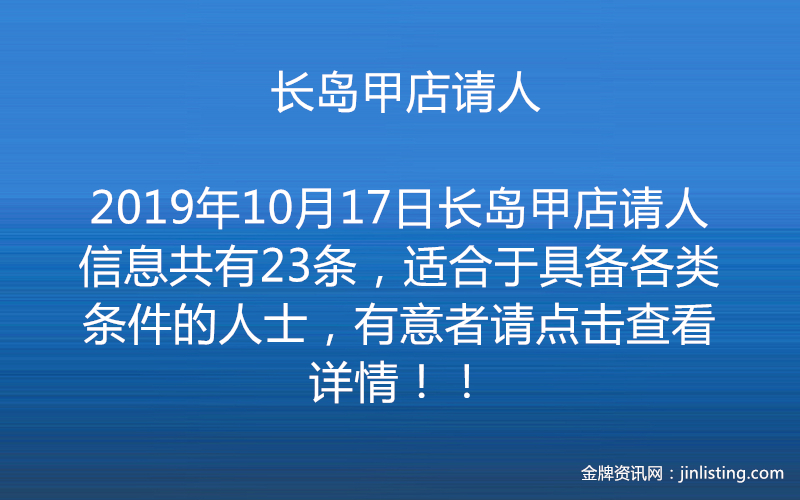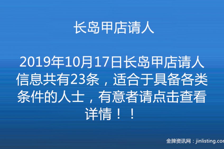 17.长岛甲店好区好小费,诚聘熟手大工,发拉盛25分钟接送。请电9172808157