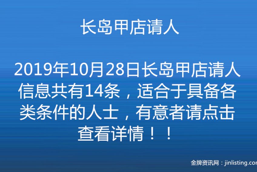 4. 长岛甲店:长岛甲店近法盛20分钟,环静好,白区、请大工、中工、有执照、有车优先、法盛接送电话号码516-408-3665手机号码917-378-7469