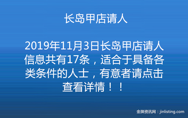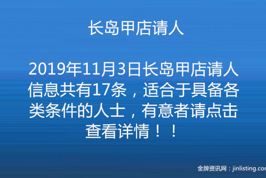 17.诚聘明天帮忙熟手小工,长岛甲店区好小费好。近发拉盛接送,9179400186 一