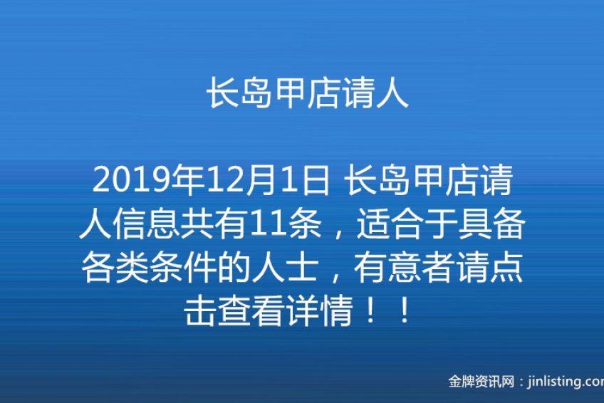 8. “长岛富裕白人区精品甲店,小费高,法盛接送。 诚招小工,917-325-7216”