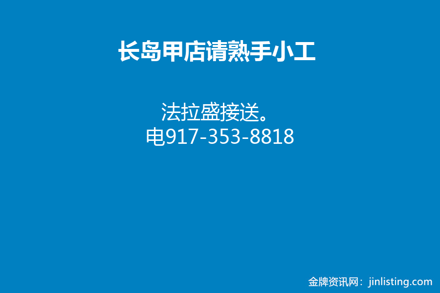 长岛甲店请熟手小工法拉盛接送。电917-353-8818