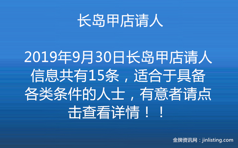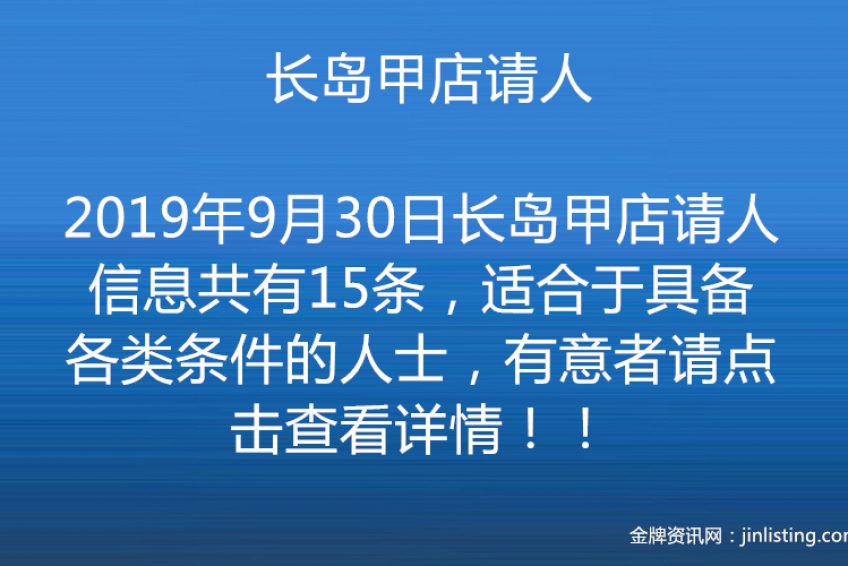 15.长岛繁忙甲店 招小工中工周末工 9294101409