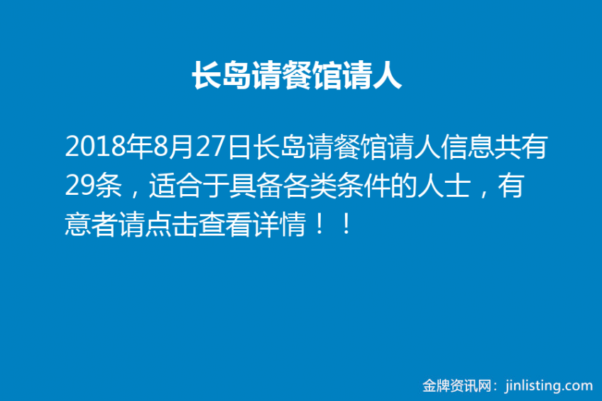 22、长岛全日餐请经验企枱一名 “长岛44出口,半个小时发拉盛接送,工作时间短, 有午休,无铁板,诚请有经验企枱一名, 意者请电917-379-7398”