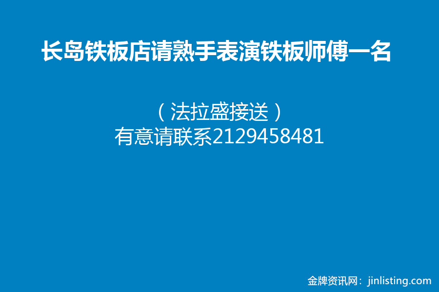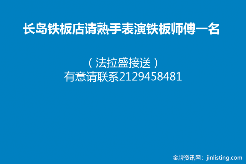 (法拉盛接送)长岛铁板店请熟手表演铁板师傅一名有意请联系2129458481