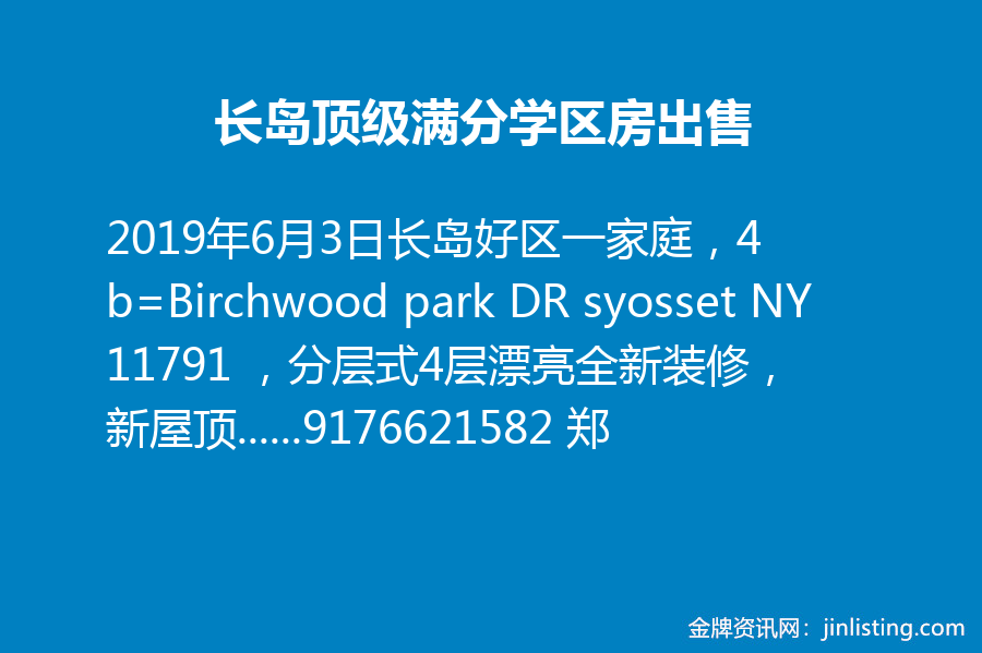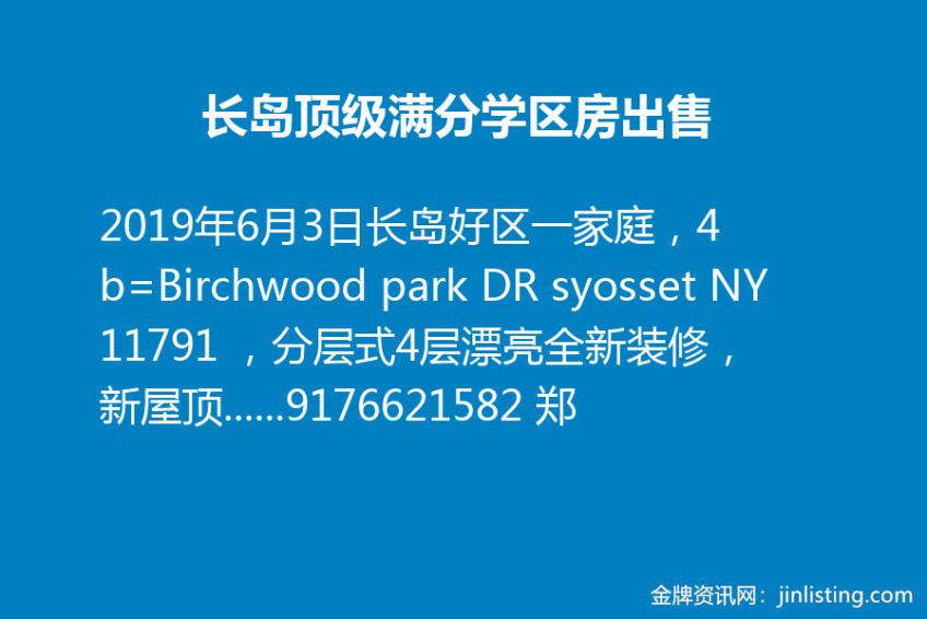 长岛顶级满分学区房出售 长岛好区一家庭,4 b=Birchwood park DR syosset NY 11791 ,分层式4层漂亮全新装修,新屋顶,高档材料时尚装修,全新中央冷暖气设备,小区环境舒适,请电9176621582 郑