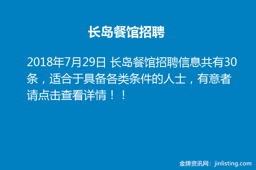 11、招企台 长岛全日餐招企台 底薪一天60可打3600 入住或法拉盛接送,电话:646-667-9769