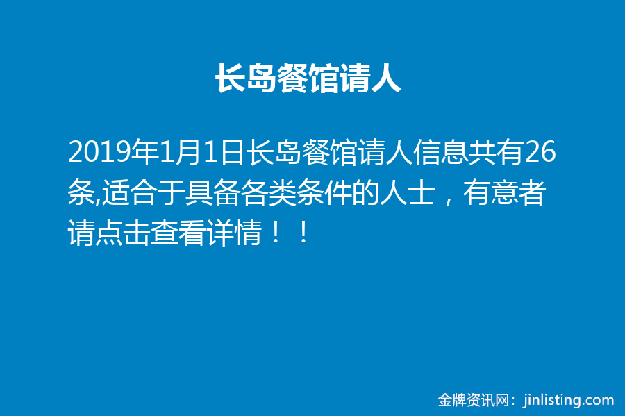 长岛日餐铁板店请人 “诚请FT cashier 请联系:631-465-0348”
