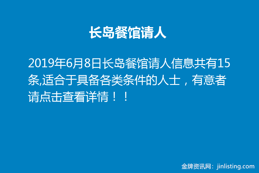 “长岛495高速路41S出口,韩国快餐店现招聘: 全职厨师:能烹饪韩国餐和中餐,会韩语且有相关经验者优先。 兼职收银员:周末两天(周六-周日),会英文且有相关经验者优先。 欢迎致电516-513 5060 (10:00am-8:30pm) 咨询详情。”