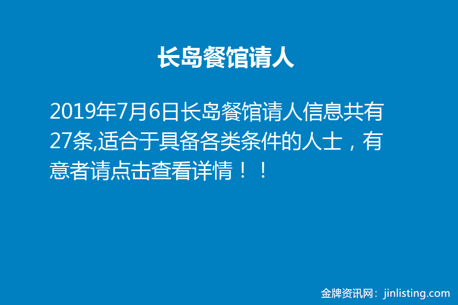 长岛中餐馆请企台 和厨房帮工 近法拉盛 要求会开车 详情电联3474419975