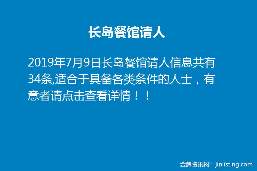 长岛日餐请企台 一名 (需报一点税)35分钟法拉盛接送请电917-330-9601