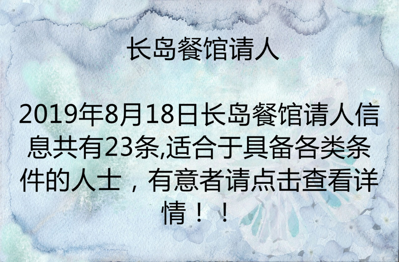 位于长岛495,37出口,美食广场请洗碗师博一名,有意者请联系@6465523615
