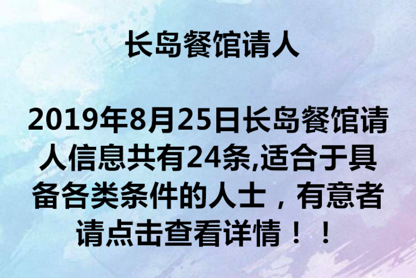 長岛堂吃歺厅请洗碗工 法拉盛接送,有意者联系9179696998