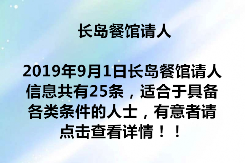 長岛中日餐法拉盛接送请洗碗工。请电917-622-1012