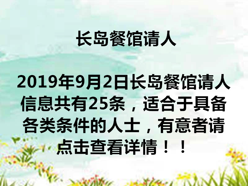 长岛东北中餐馆请企台 需要一点英文 生意稳定 法拉盛接送 20分钟车程 详情电联3474419975