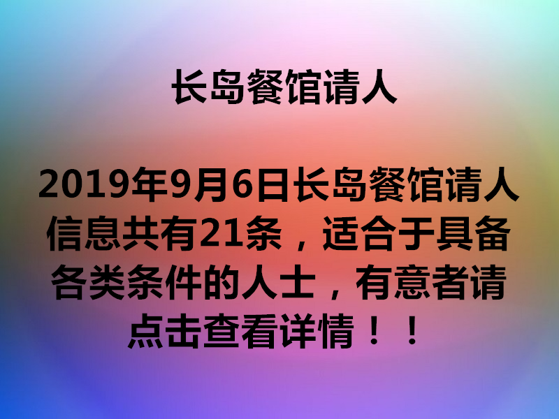 长岛中日餐请 熟手 企台. 高薪. Please call 347-681-0571