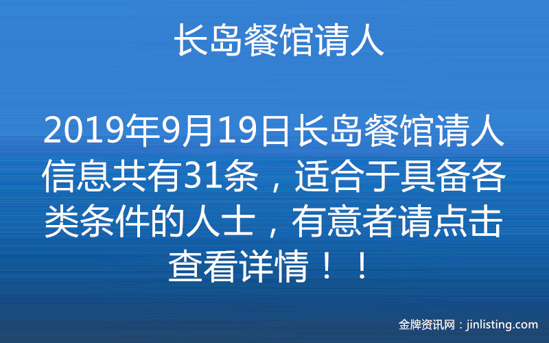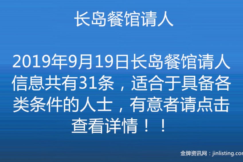 @@@长岛全日餐请经验企枱一名 “长岛44出口,半个小时发拉盛接送,工作时间短, 有午休,无铁板,诚请有经验企枱一名, 意者请电917-379-7398”