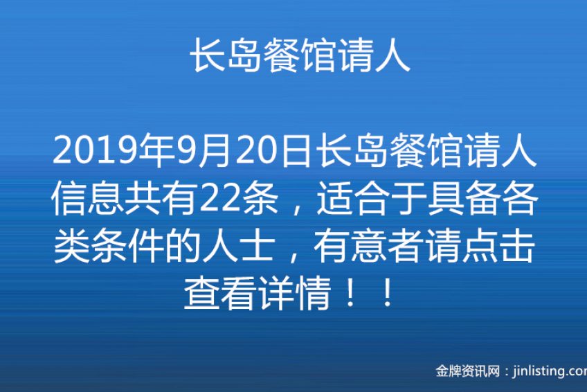 “长岛全日餐44出口聘请经验企台一名 法拉盛接送电话6462200776”