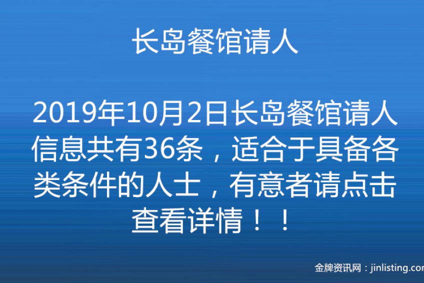 “长岛All You Can Eat全日餐招启台,法拉盛接送,需会英文(客人都是老外),动作快。经理同事都是年轻人好相处,只要事情本分做好就好,一周休一天,午休一小时,这里采取月薪制 (不打小费的),熟手启台月薪$3200,做好做熟后有提升空间。半熟手电议。 有意者联系 9294335861 (谢绝销售)”