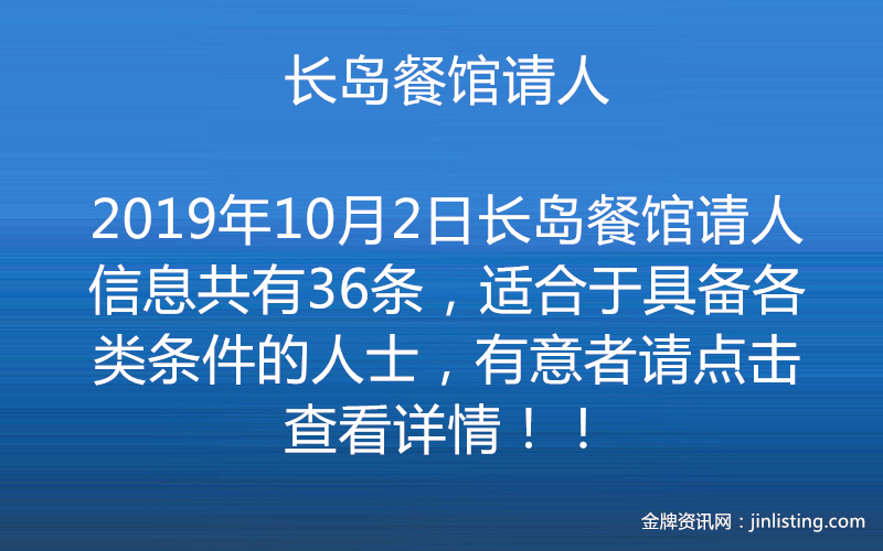 长岛市中餐馆请菜杂,薪高粮准,交通方便,七号地铁步行即到,有意者请电3476068152