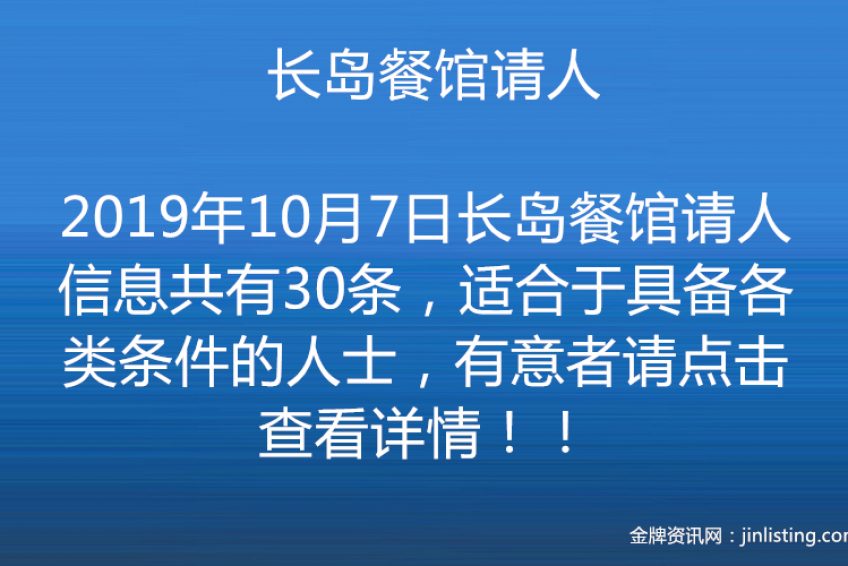 @@@长岛全日餐请经验企枱一名 “长岛44出口,半个小时发拉盛接送,工作时间短,有午休, 无铁板,诚请有经验企枱一名, 意者请电917-379-7398”