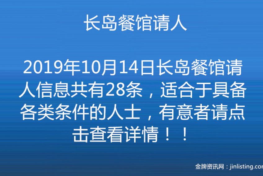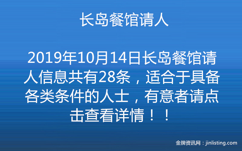 @@@长岛全日餐请经验企枱一名 “长岛44出口,半个小时发拉盛接送,工作时间短, 有午休,无铁板,诚请有经验企枱一名, 意者请电917-379-7398”
