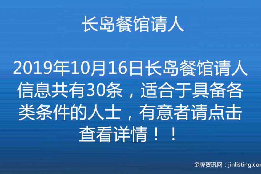 “长岛All You Can Eat全日餐招启台,法拉盛接送,需会英文(客人都是老外),动作快。经理同事都是年轻人好相处,只要事情本分做好就好,一周休一天,午休一小时,这里采取月薪制 (不打小费的),熟手启台月薪$3200,做好做熟后有提升空间。半熟手电议。 有意者联系 9294335861 (谢绝销售)”