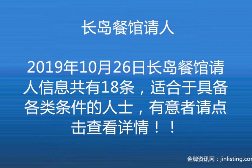 “长岛All You Can Eat全日餐招启台,法拉盛接送,需会英文(客人都是老外),动作快。经理同事都是年轻人好相处,只要事情本分做好就好,一周休一天,午休一小时,这里采取月薪制 (不打小费的),熟手启台月薪$3200,做好做熟后有提升空间。半熟手电议。 有意者联系 9294335861 (谢绝销售)”