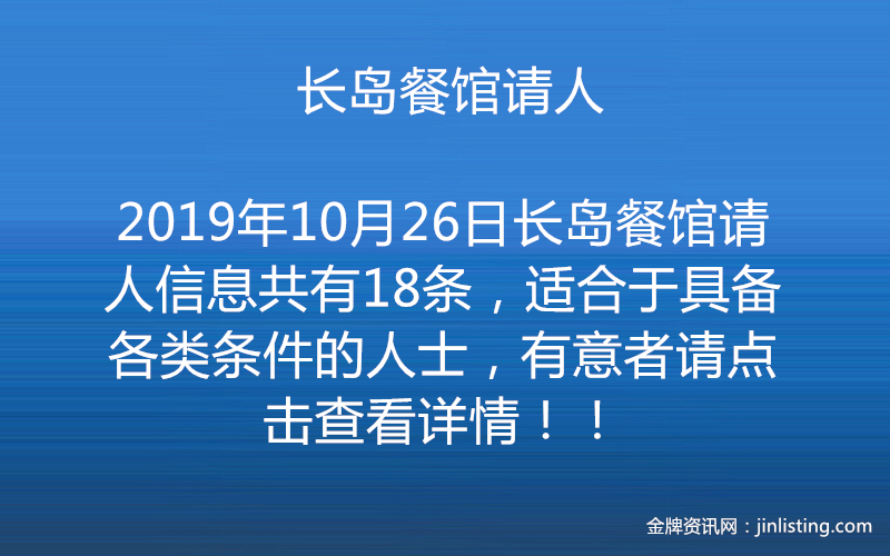 长岛日本餐馆堂吃店请经验女棋台646-726-3893 “距离法拉盛15分钟 需自己开车 欢迎full time 或者 part time 时间有弹性 事情少收入高 有意者请联系电话646-726-3893”