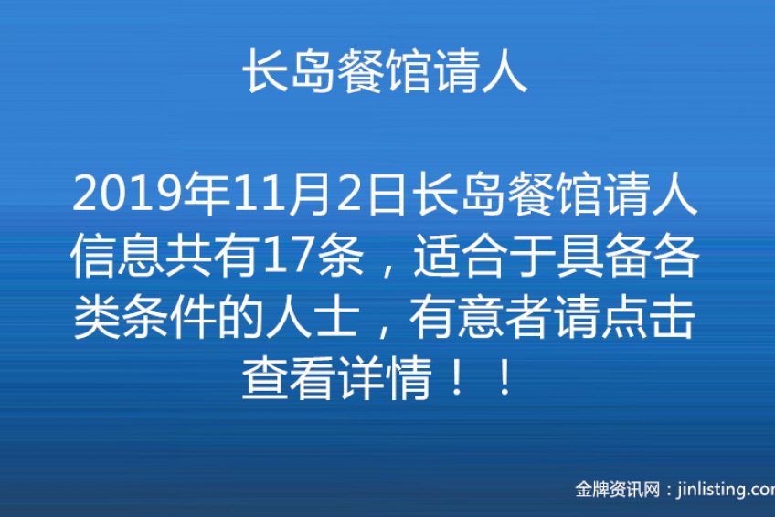 “长岛全日餐请周二三五六pt企台一名 法拉盛接送车程30分钟电话 6462200776”