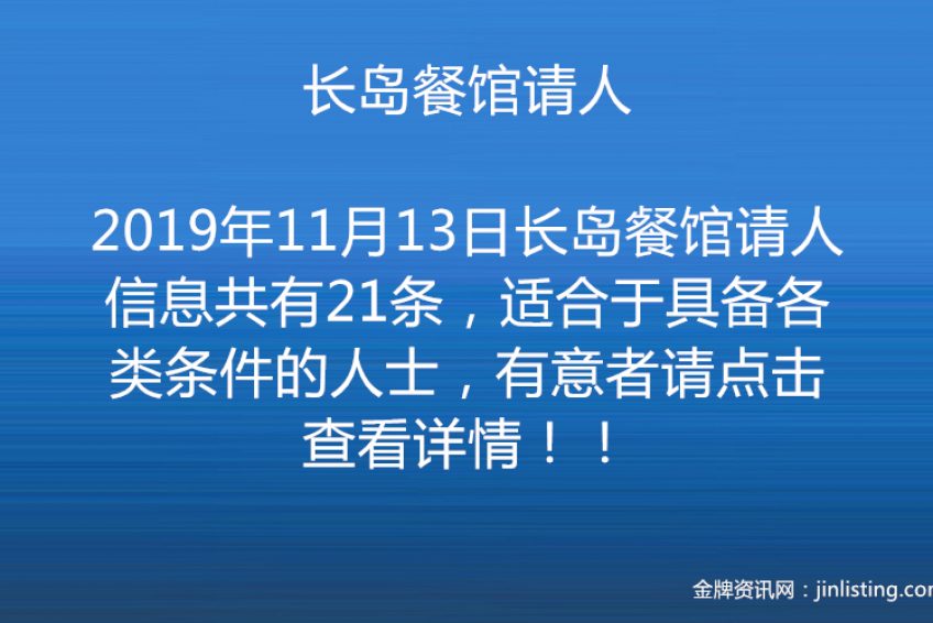 长岛36出口亚洲餐请熟手长工年轻收银 需英文流利 有责任心 为人亲和 130/天+小费 法拉盛接送 电话6462904133